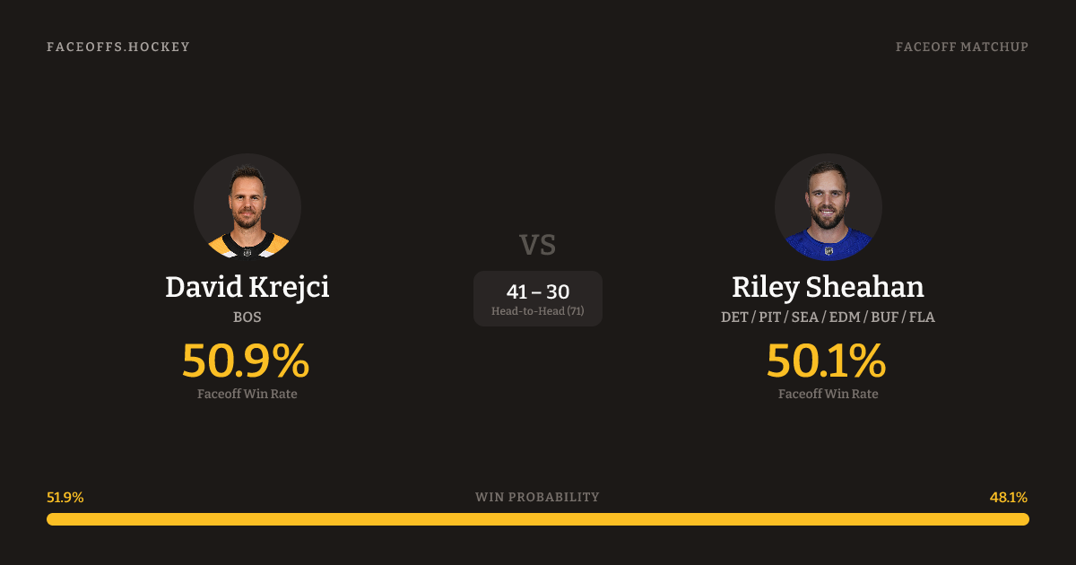 David Krejci vs Riley Sheahan — Faceoff Head-to-Head