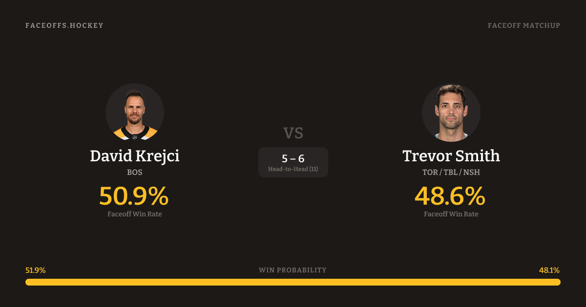 David Krejci vs Trevor Smith — Faceoff Head-to-Head