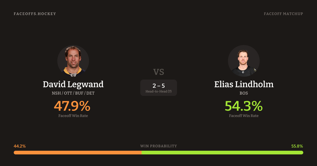 David Legwand vs Elias Lindholm — Faceoff Head-to-Head