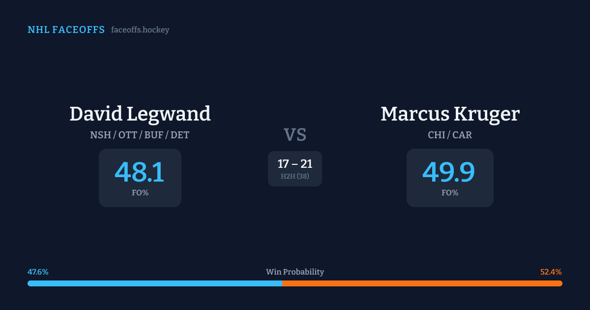 David Legwand vs Marcus Kruger — Faceoff Head-to-Head