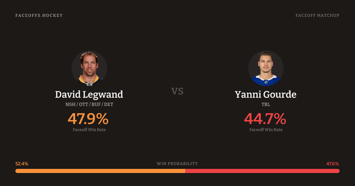 David Legwand vs Yanni Gourde — Faceoff Head-to-Head
