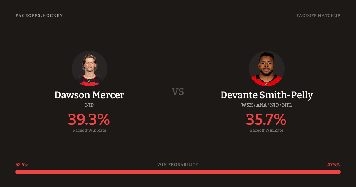 Dawson Mercer vs Devante Smith-Pelly — Faceoff Head-to-Head