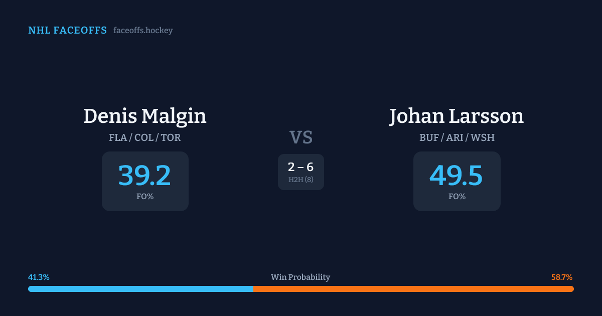Denis Malgin vs Johan Larsson — Faceoff Head-to-Head