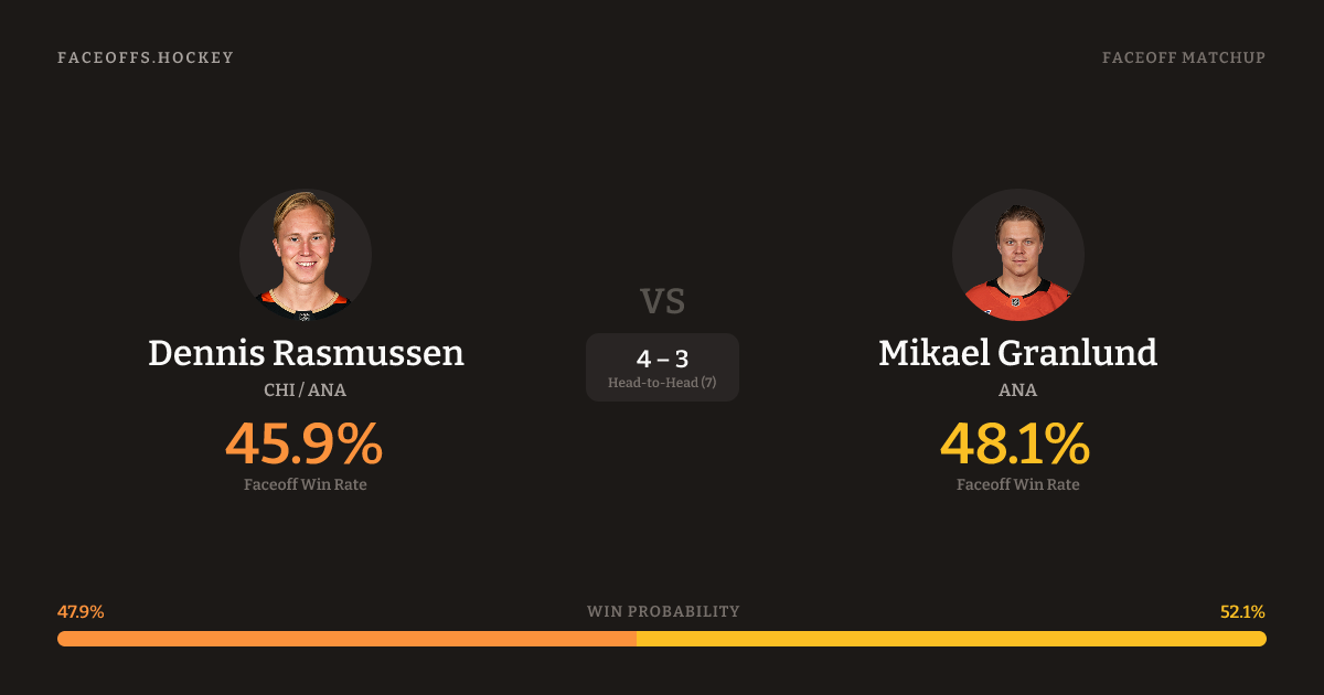 Dennis Rasmussen vs Mikael Granlund — Faceoff Head-to-Head