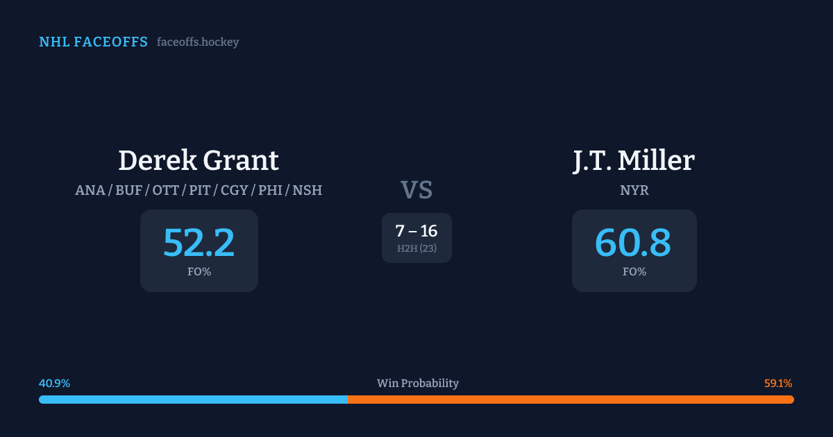 Derek Grant vs J.T. Miller — Faceoff Head-to-Head