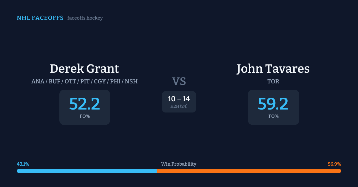 Derek Grant vs John Tavares — Faceoff Head-to-Head