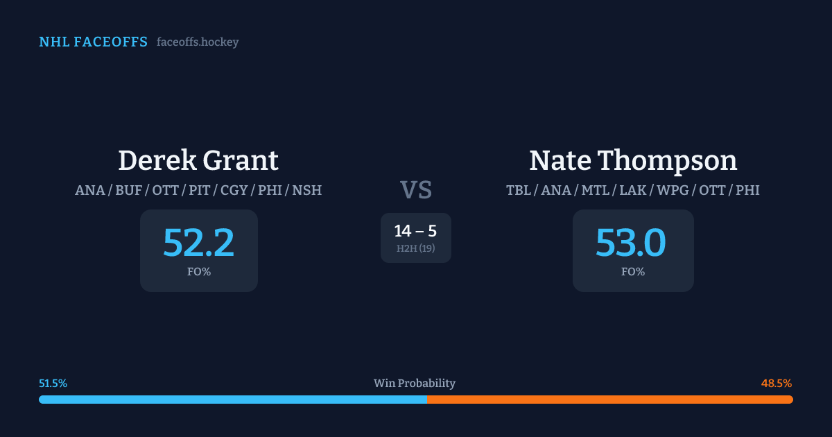 Derek Grant vs Nate Thompson — Faceoff Head-to-Head