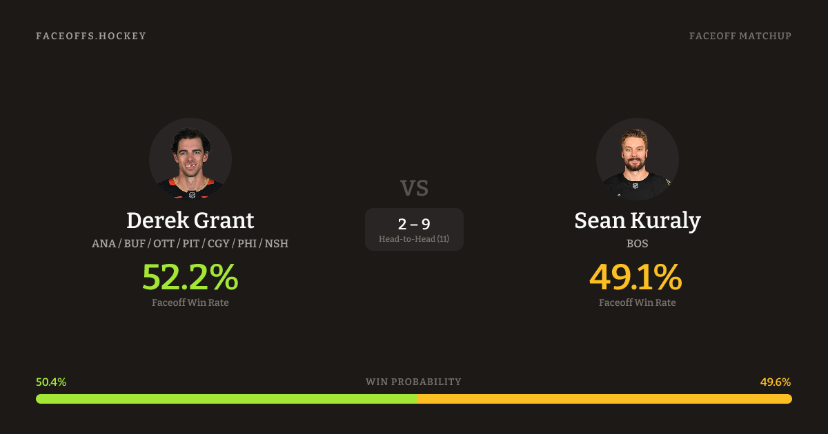 Derek Grant vs Sean Kuraly — Faceoff Head-to-Head