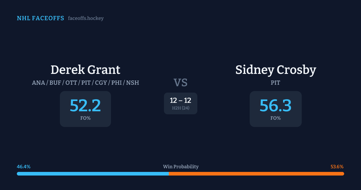 Derek Grant vs Sidney Crosby — Faceoff Head-to-Head