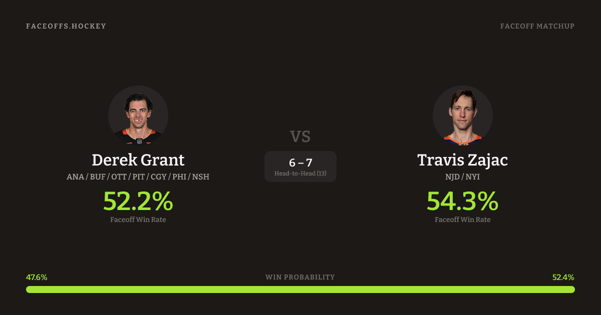 Derek Grant vs Travis Zajac — Faceoff Head-to-Head