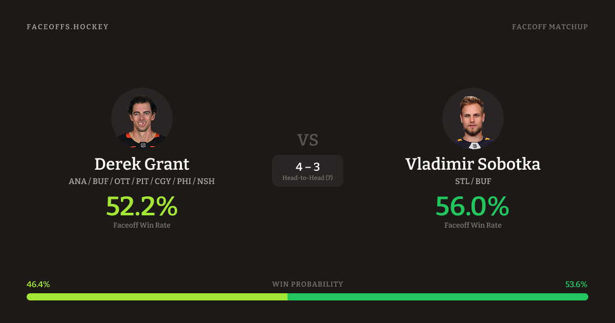 Derek Grant vs Vladimir Sobotka — Faceoff Head-to-Head