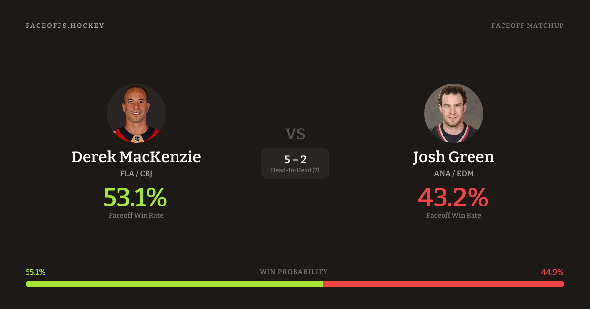 Derek MacKenzie vs Josh Green — Faceoff Head-to-Head
