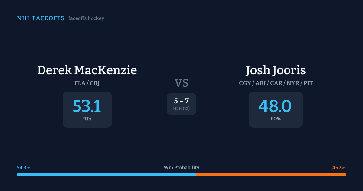 Derek MacKenzie vs Josh Jooris — Faceoff Head-to-Head