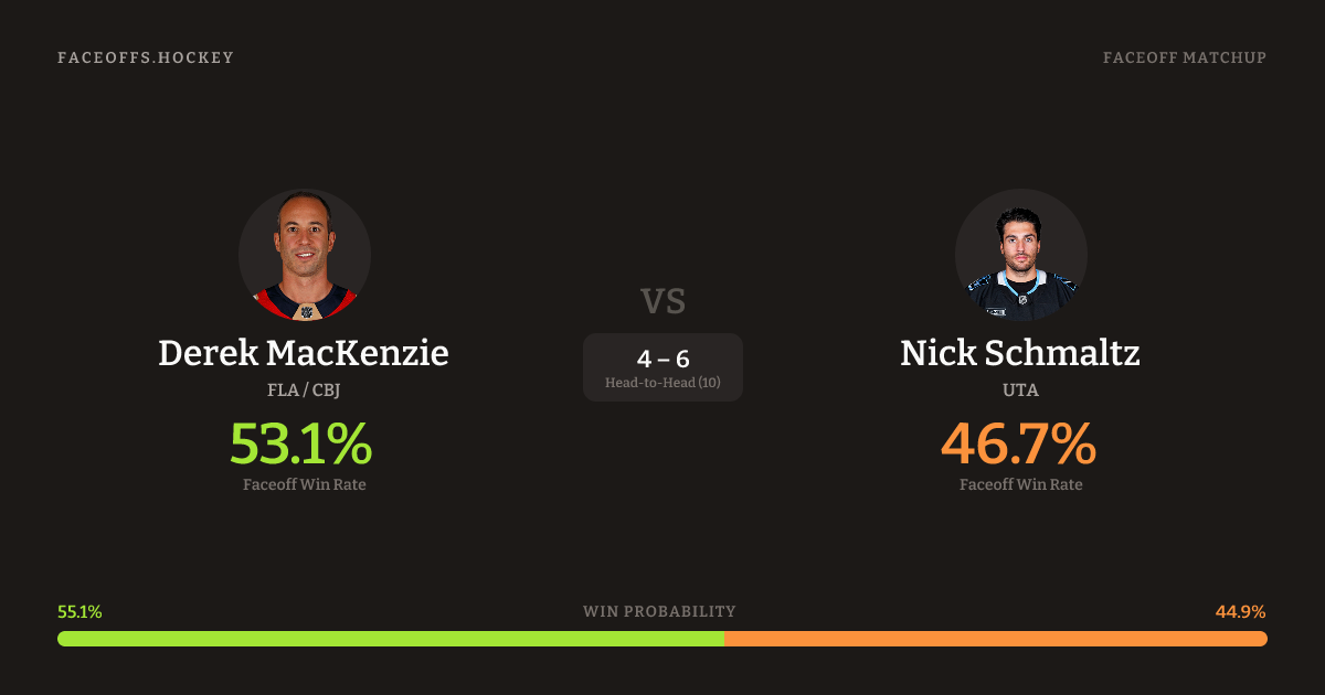 Derek MacKenzie vs Nick Schmaltz — Faceoff Head-to-Head