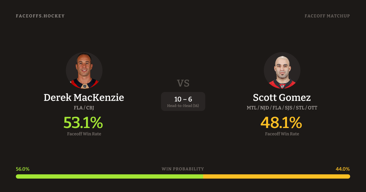 Derek MacKenzie vs Scott Gomez — Faceoff Head-to-Head