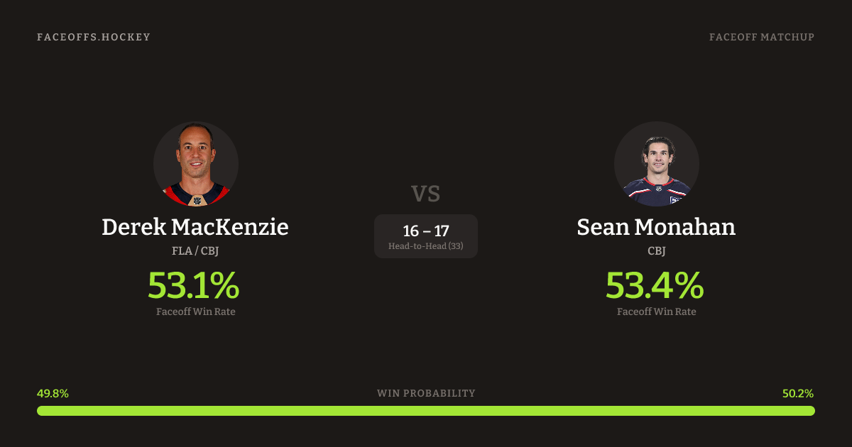 Derek MacKenzie vs Sean Monahan — Faceoff Head-to-Head