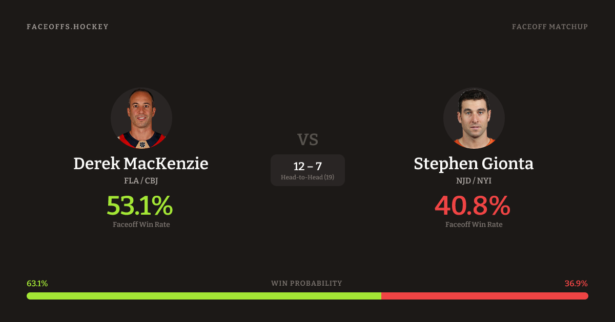 Derek MacKenzie vs Stephen Gionta — Faceoff Head-to-Head