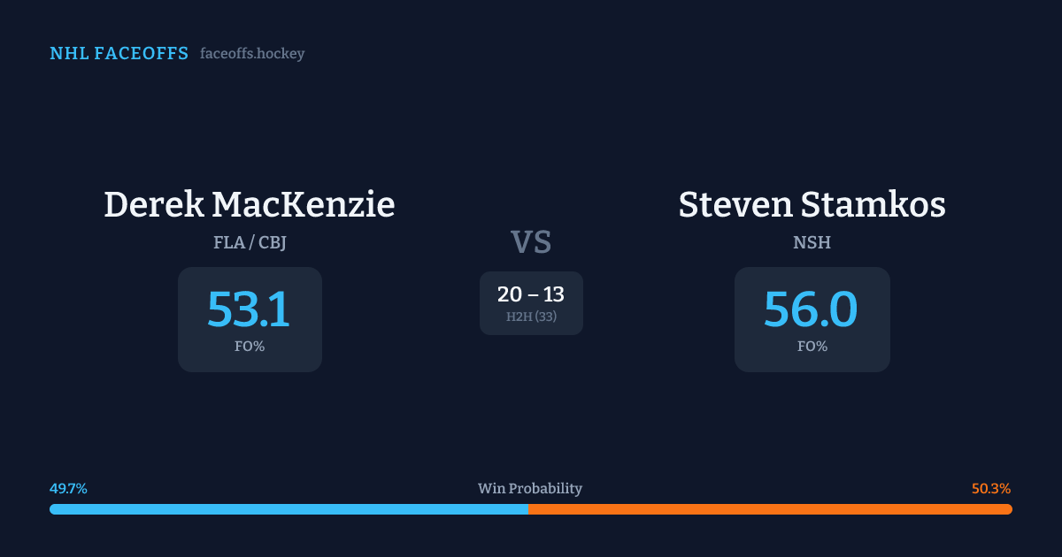 Derek MacKenzie vs Steven Stamkos — Faceoff Head-to-Head