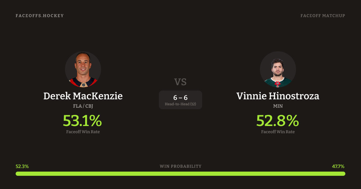 Derek MacKenzie vs Vinnie Hinostroza — Faceoff Head-to-Head