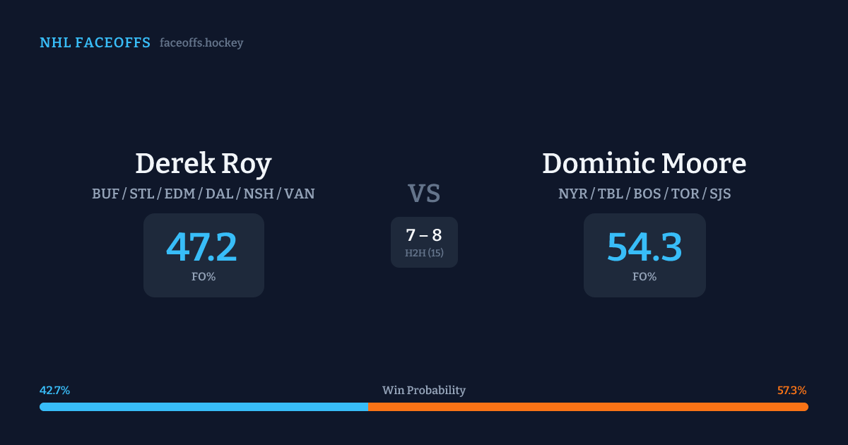Derek Roy vs Dominic Moore — Faceoff Head-to-Head