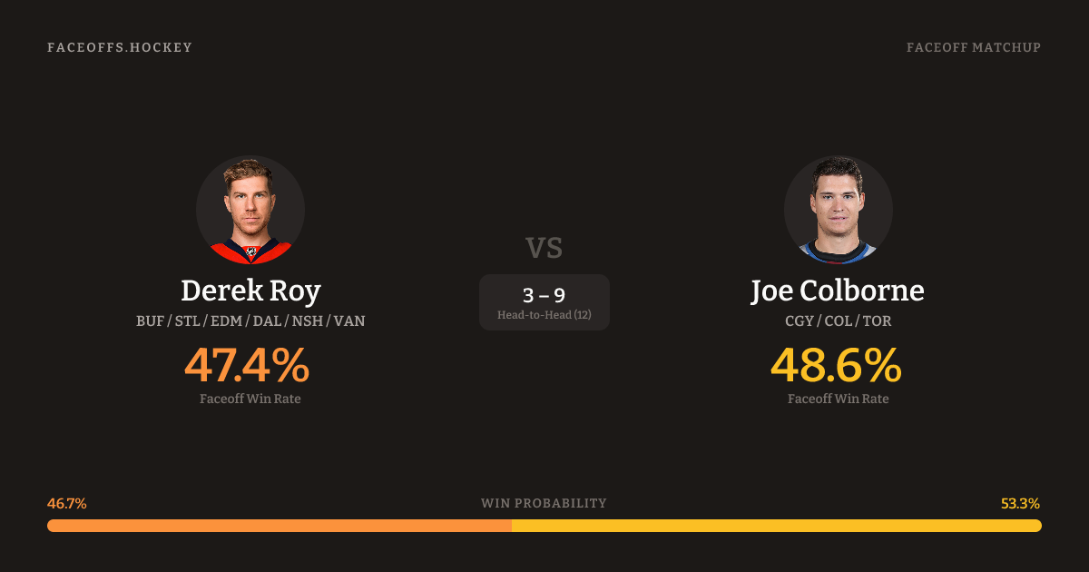 Derek Roy vs Joe Colborne — Faceoff Head-to-Head