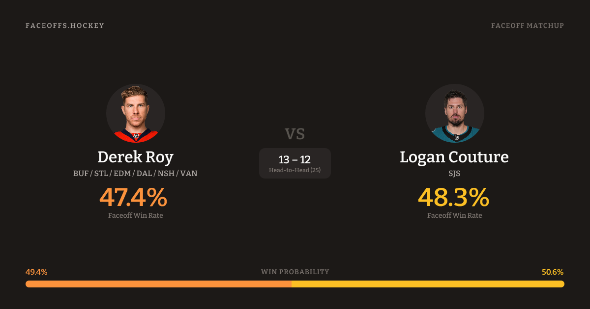 Derek Roy vs Logan Couture — Faceoff Head-to-Head