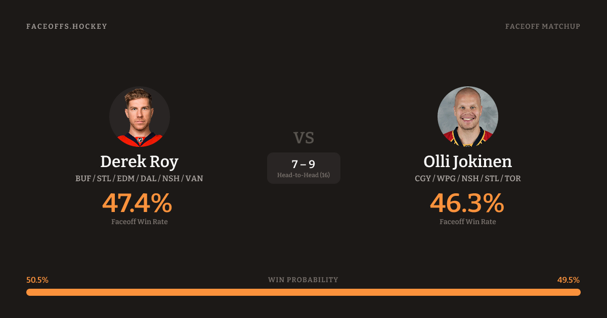 Derek Roy vs Olli Jokinen — Faceoff Head-to-Head