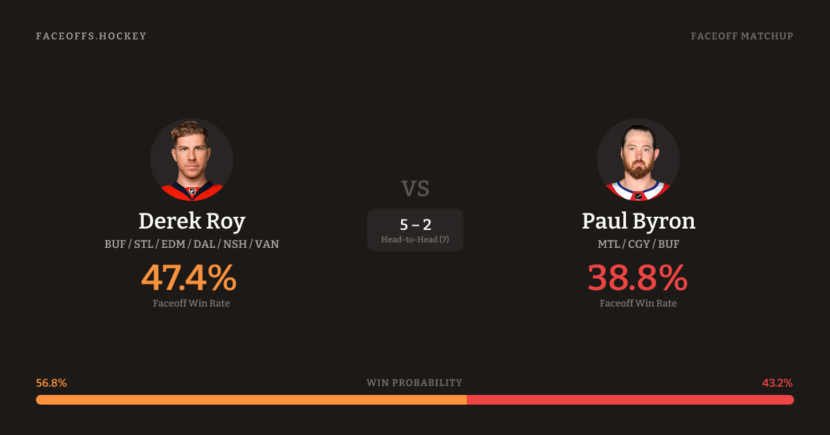 Derek Roy vs Paul Byron — Faceoff Head-to-Head