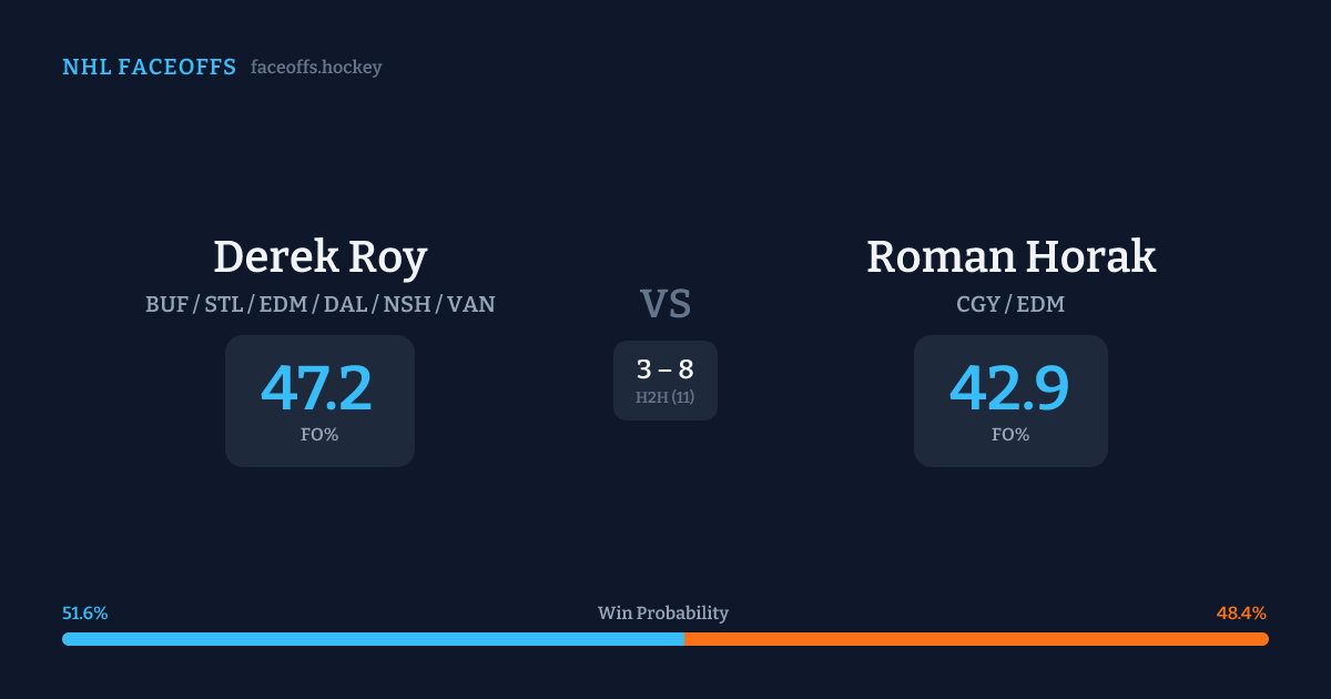 Derek Roy vs Roman Horak — Faceoff Head-to-Head