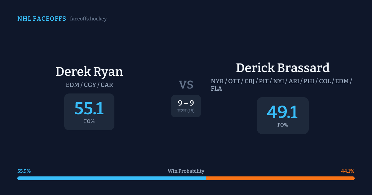 Derek Ryan vs Derick Brassard — Faceoff Head-to-Head
