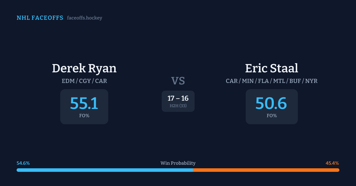 Derek Ryan vs Eric Staal — Faceoff Head-to-Head