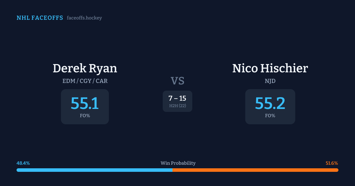Derek Ryan vs Nico Hischier — Faceoff Head-to-Head