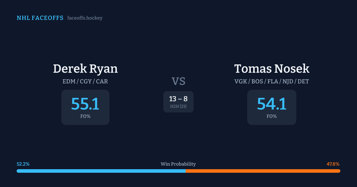 Derek Ryan vs Tomas Nosek — Faceoff Head-to-Head