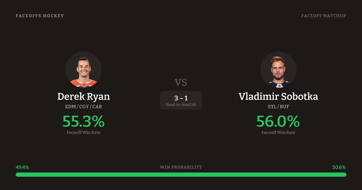 Derek Ryan vs Vladimir Sobotka — Faceoff Head-to-Head
