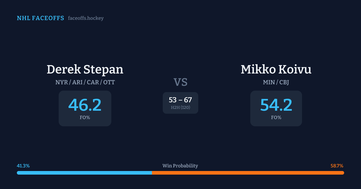 Derek Stepan vs Mikko Koivu — Faceoff Head-to-Head