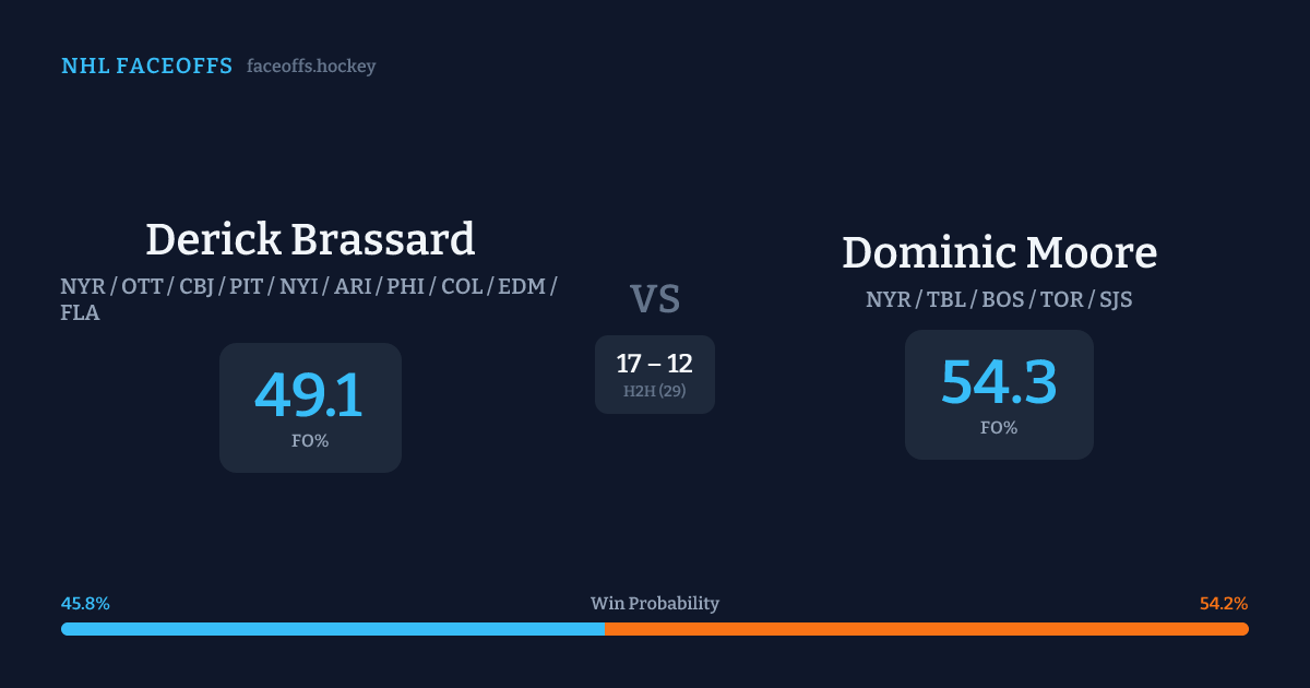 Derick Brassard vs Dominic Moore — Faceoff Head-to-Head