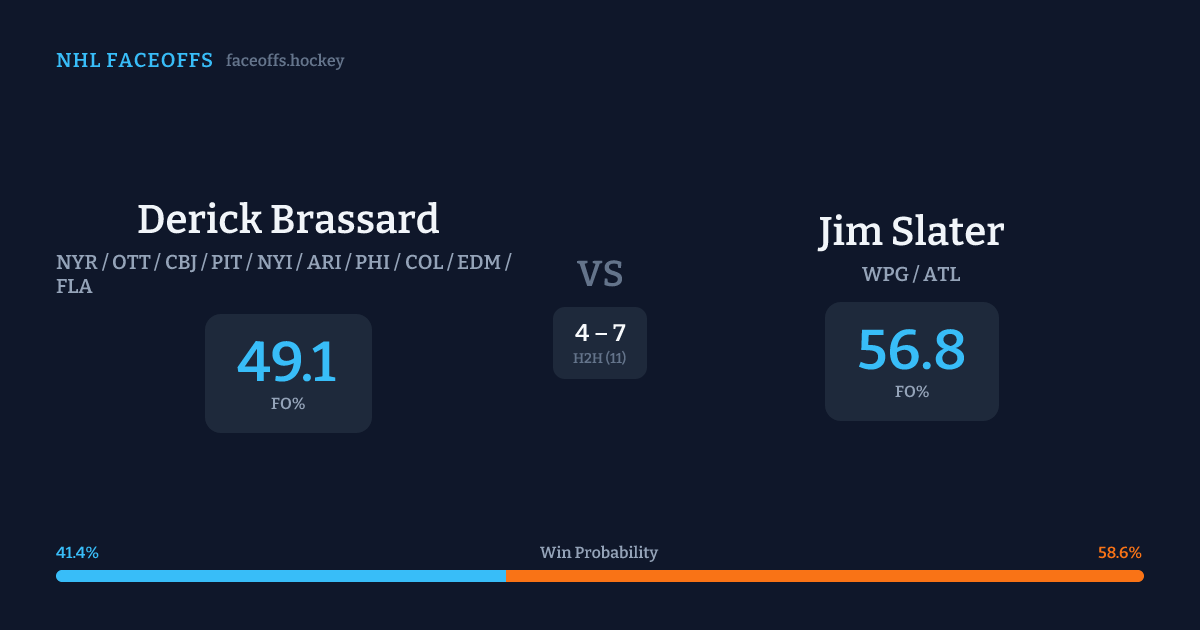 Derick Brassard vs Jim Slater — Faceoff Head-to-Head
