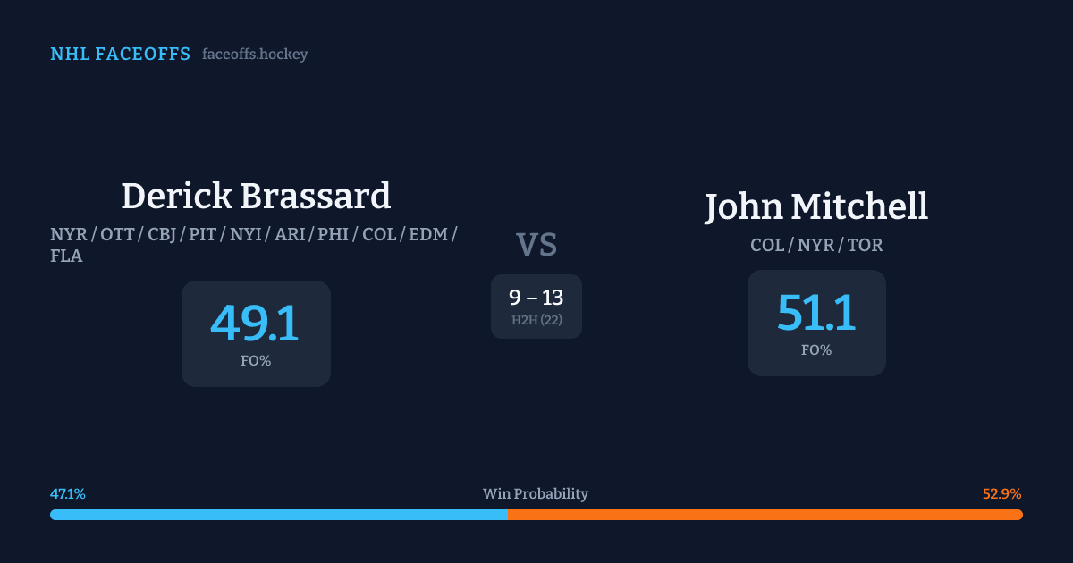 Derick Brassard vs John Mitchell — Faceoff Head-to-Head