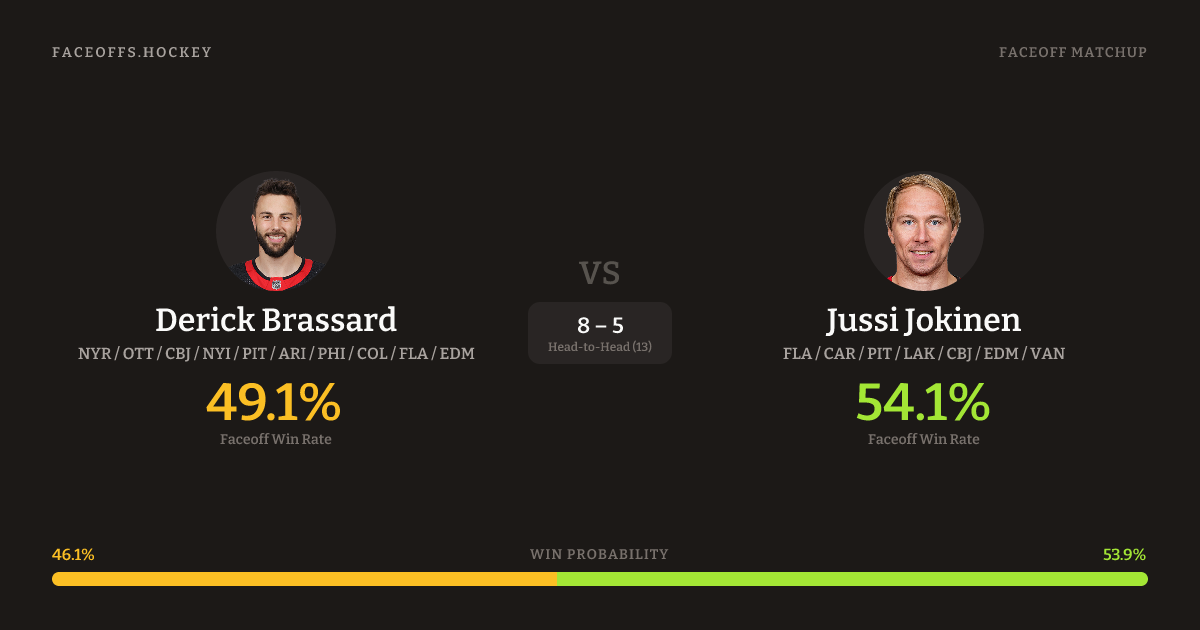 Derick Brassard vs Jussi Jokinen — Faceoff Head-to-Head