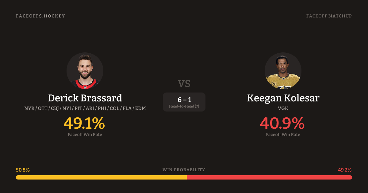 Derick Brassard vs Keegan Kolesar — Faceoff Head-to-Head