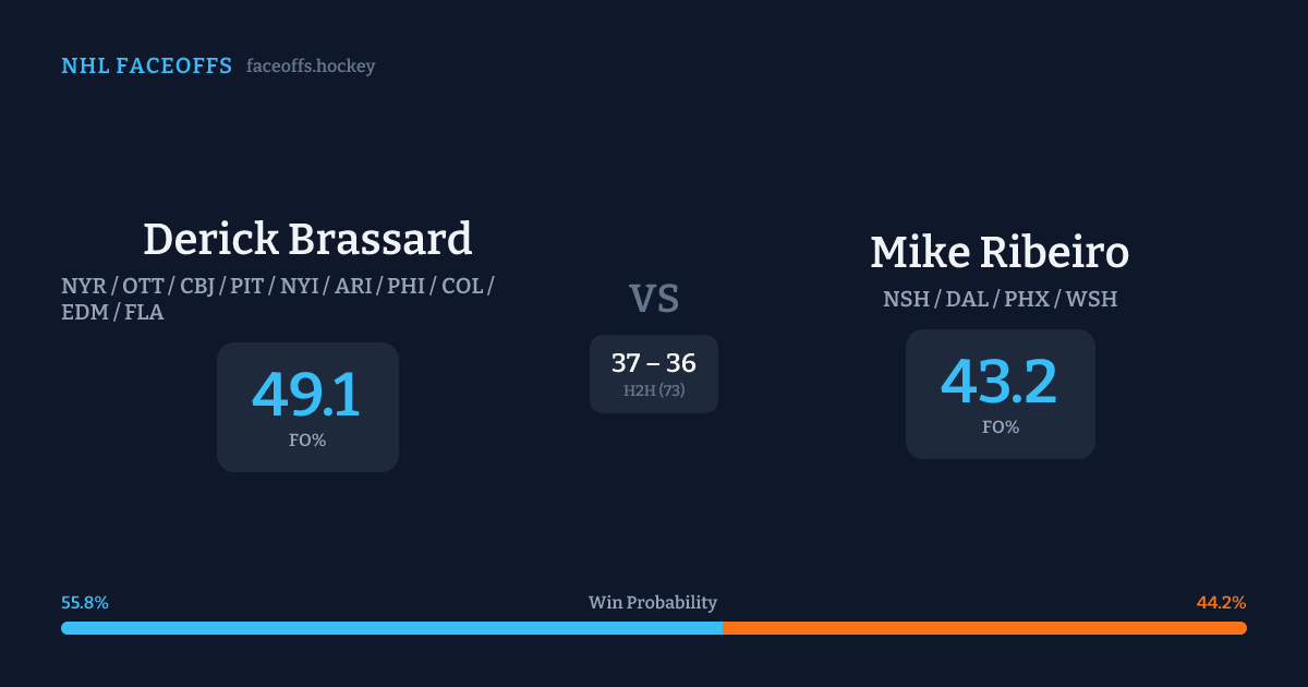 Derick Brassard vs Mike Ribeiro — Faceoff Head-to-Head