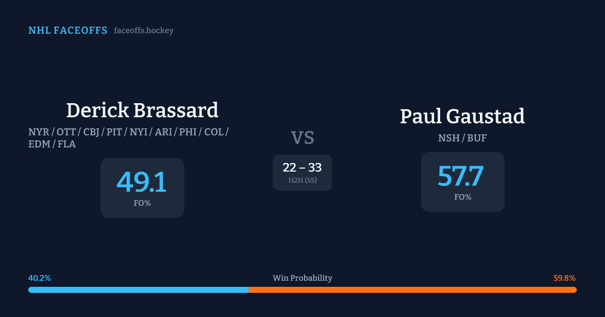 Derick Brassard vs Paul Gaustad — Faceoff Head-to-Head