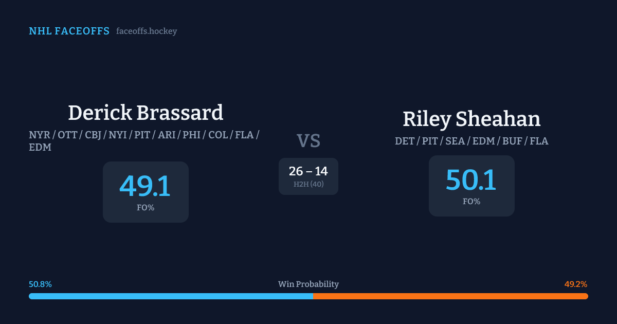 Derick Brassard vs Riley Sheahan — Faceoff Head-to-Head