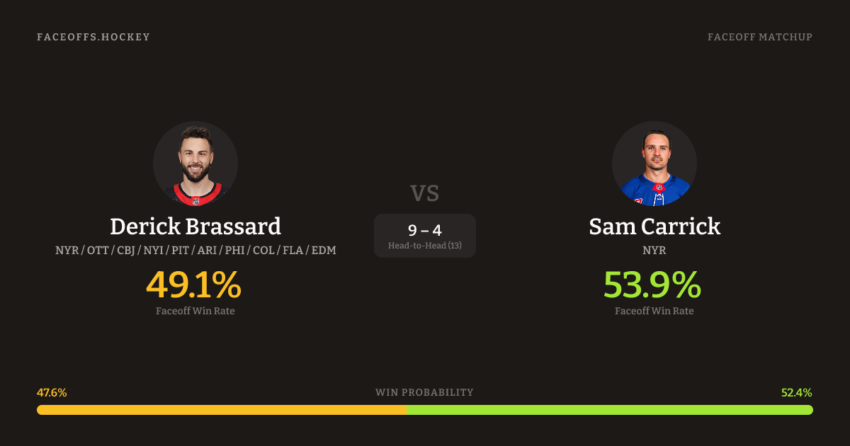 Derick Brassard vs Sam Carrick — Faceoff Head-to-Head