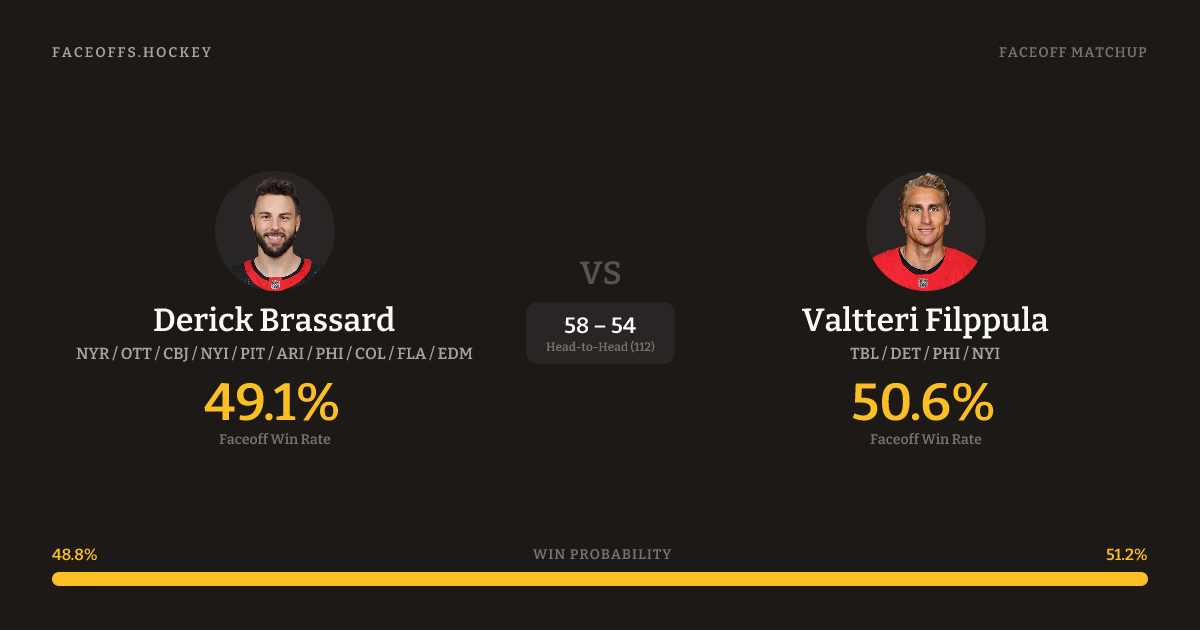 Derick Brassard vs Valtteri Filppula — Faceoff Head-to-Head