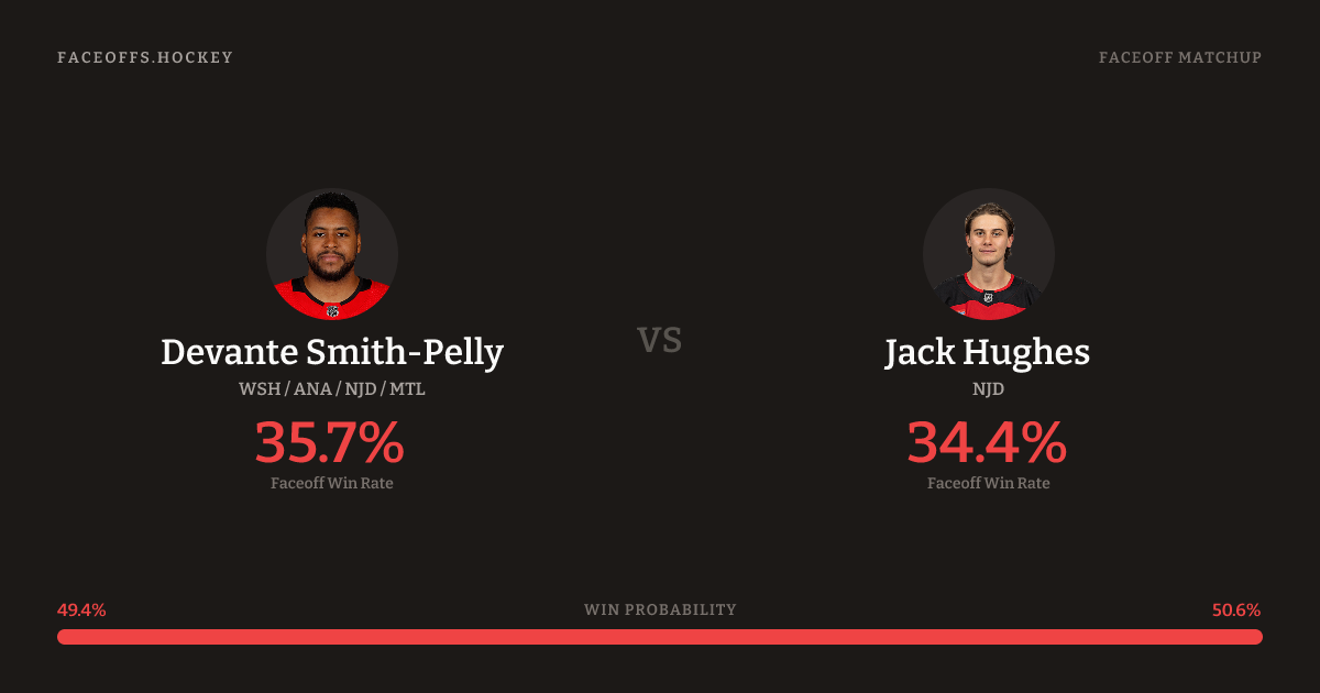 Devante Smith-Pelly vs Jack Hughes — Faceoff Head-to-Head