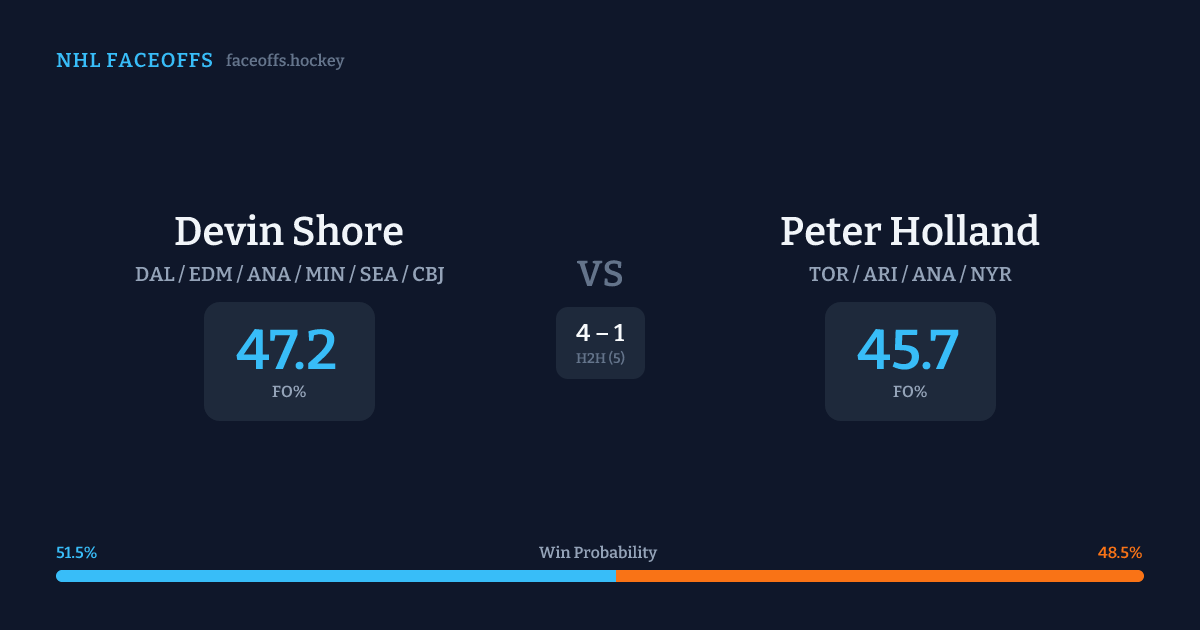 Devin Shore vs Peter Holland — Faceoff Head-to-Head