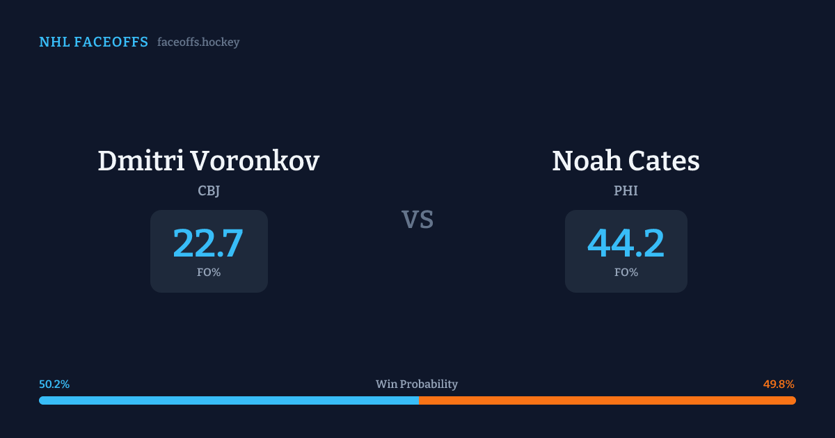 Dmitri Voronkov vs Noah Cates — Faceoff Head-to-Head