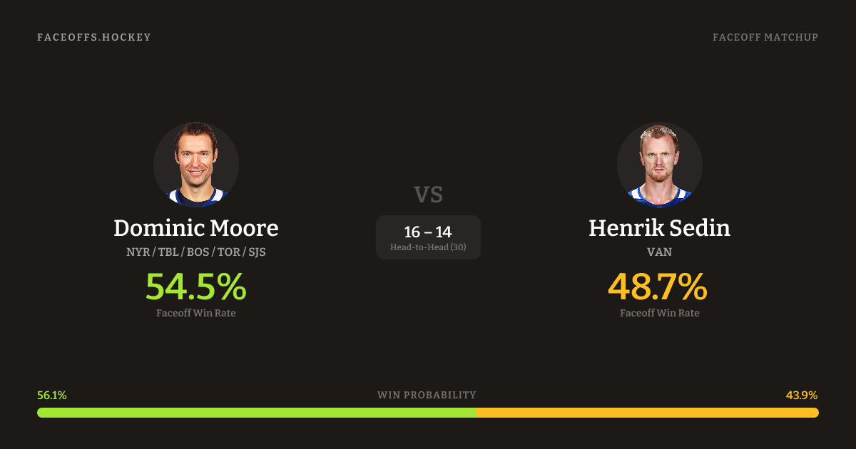 Dominic Moore vs Henrik Sedin — Faceoff Head-to-Head