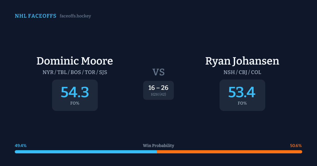 Dominic Moore vs Ryan Johansen — Faceoff Head-to-Head